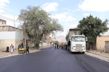 من جهة أخرى تواصلت اليوم اعمال إعادة التأهيل والترميم والصيانة وتنفيذ طبقة إسفلتية للشارع الواقع أمام بنك الدم حي الزراعة بمديرية التحرير