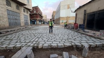 رصف حجري لشوارع حارة الشراعي غرب فندق تاج سباء وحدة جوار ٥١١مديرية التحرير
