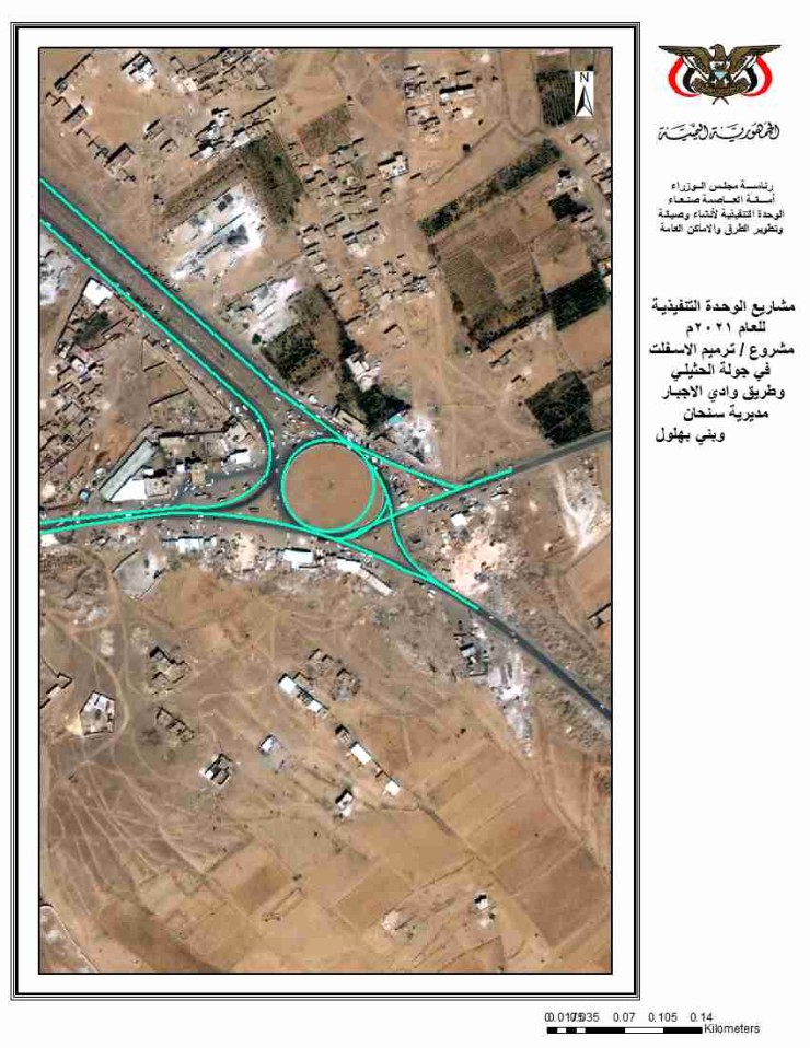 مشروع / صيانة وترميم الاسفلت في جولة الحثيلي وطريق وادي الاجبار مديرية سنحان وبني بهلول