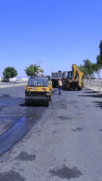 تواصل أعمال الصيانة الطارئة والوقائية لترميم الحفريات والأسفلت في جسر بيت بوس وشارع الخمسين بالعاصمة