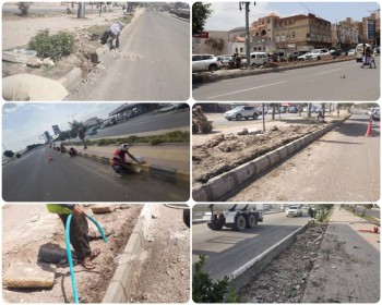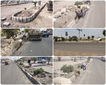 اعمال مكثفة للفرق الميدانية التابعة للإدارة الفنية في الوحدة التنفيذية لإنشاء وصيانة وتطوير الطرق والأماكن العامة بأمانة العاصمة في مختلف الشوارع الرئيسية تنفيذا لتوجيهات القيادة السياسية وقيادة أمانة العاصمة التي تقتضي برفع وتيرة أعمال التحسينات المرورية وإعادة ترميم وصيانة وطلاء البردورات في الأرصفة والجزر الوسطية والإسهام الفعال في تطوير الشوارع والحفاظ على المظهر الحضاري