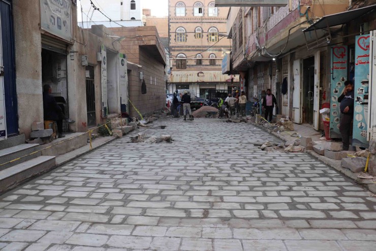 رصف حجري لشوارع حارة الشراعي غرب فندق تاج سباء وحدة جوار ٥١١مديرية التحرير