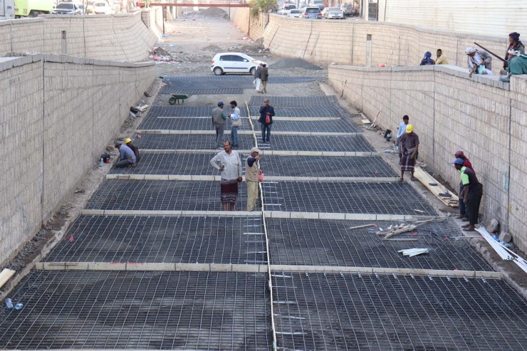 مشروع استكمال الجسر السطحي داخل سائلة الاصبحي وتقاطعه مع شارع المقالح وتاهيل رامبات الدخول والخروج